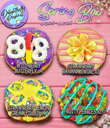 A dozen doughnuts featuring spring flavors and colors! For descriptions, click on "Dozen of the Week." To order, click "Order Online" and then on the order form, select Dozen of the Week!